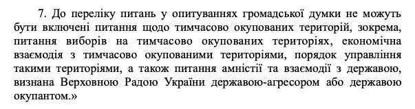 "Это положение не ограничивает ЦИК задавать вопросы, связанные с Донбассом. Я напомню, что это не первая попытка власти использовать соцопросы для формирования государственной политики. Тут можно вспомнить данные мобильной переписи населения Дубилета. Но возникает вопрос – зачем ЦИКу проводить такие опросы, если можно заказать любой срез общественного мнения у всех ведущих социологических компаний? Вероятно, что ЦИКу (а точнее, Банковой) нужно не просто сделать срез общественного мнения, а легитимизировать этот результат. Могут спросить, что делать с дончанами или какая должна быть судьба Минских соглашений. Или должна ли Украина идти в ЕС и НАТО. Или спросить, что делать с русским языком. То есть если удастся закрепить такую норму, то с наибольшей долей вероятности это будет так называемый консультативный референдум, который, скорее всего, будет касаться того или иного аспекта гуманитарной политики, связанной с Донбассом", – считает политолог Руслан Бортник.