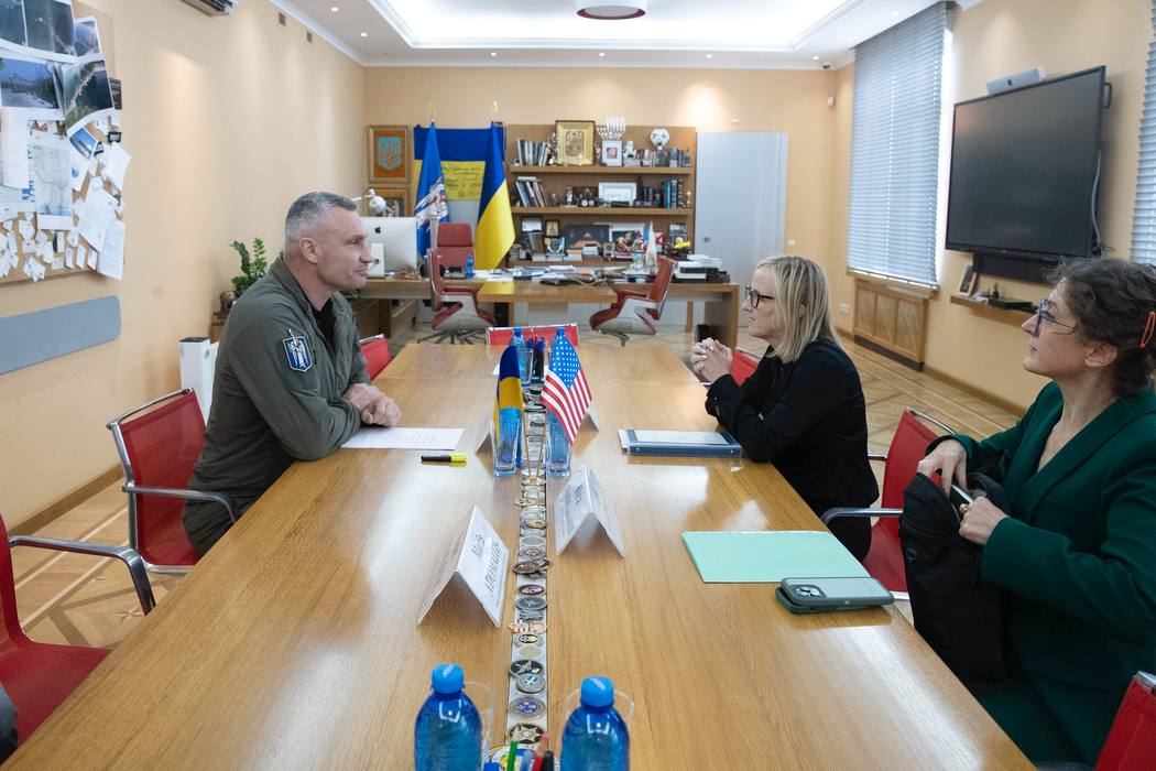 Мэр Киева (слева) встречается с временной поверенной в делах США в Украине Джули Дэвис. Фото: Telegram-канал Кличко