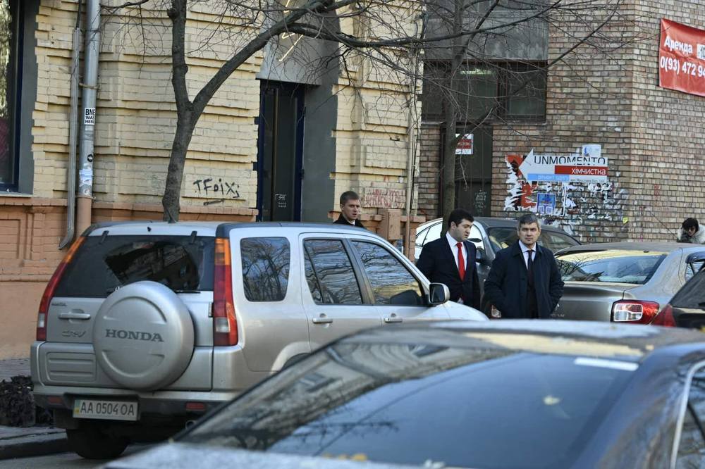 Роман Насиров со своими адвокатами здесь провел около получаса до пресс-конференции, а после нее - он уехал на микроавтобусе Volkswagen.