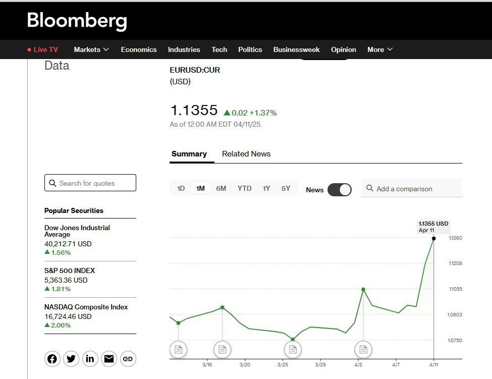 "Закончится бегство капитала из США - и ситуация поменяется. Пока верхняя граница для отношения евро к доллару — 1,15. Ситуация меняется быстро. У США идут переговоры с ЕС, РФ, Китаем. Когда будут результаты (любые), тогда будет фиксация курса. И отскок", — добавил Шевчишин.