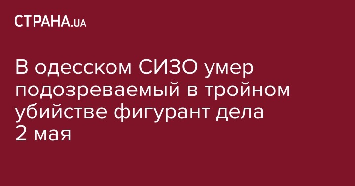 В одесском СИЗО умер подозреваемый в тройном убийстве фигурант дела 2 мая