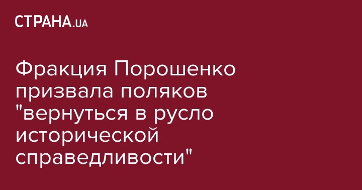 Фракция партии "Блок Петра Порошенко" в Верховной Раде призывает польских коллег вернуться в русло конструктивного диалога для установления исторической справедливости.