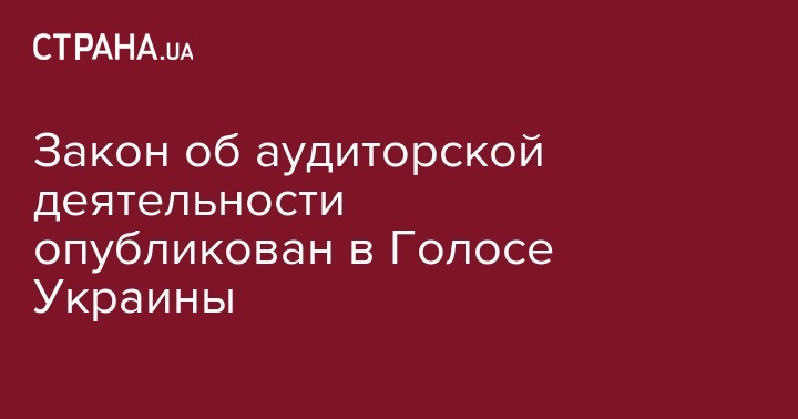 Закон № 2258-VIII "Об аудите финансовой отчетности и аудиторской деятельности" опубликован в "Голосе Украины".
