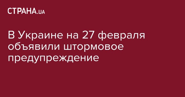 В большинстве областей Украины на 27 февраля объявлено штормовое предупреждение. Об этом сообщает пресс-служба ГосЧС.