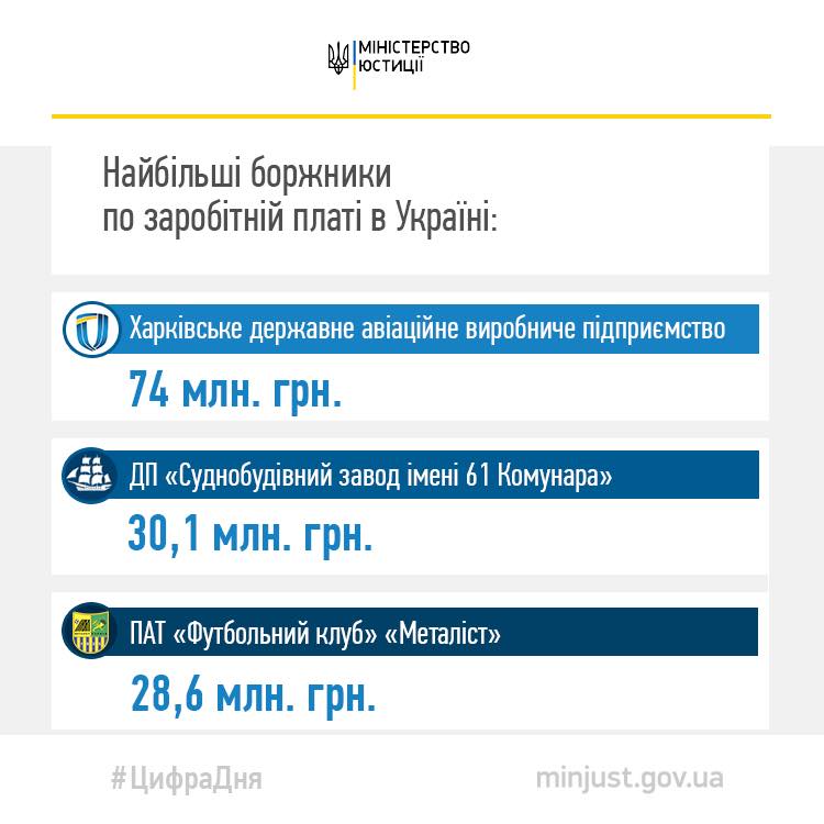 На третьей строчке компаний-должников оказался футбольный клуб "Металлист". Здесь долги по выплатам зарплаты составили 28,6 млн грн.