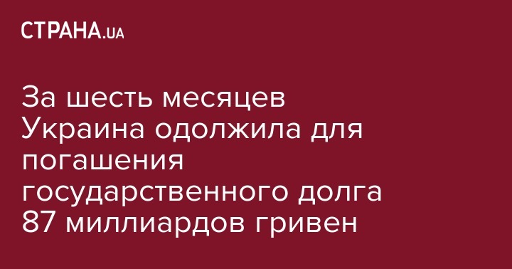 За шесть месяцев Украина одолжила для погашения государственного долга 87 миллиардов гривен