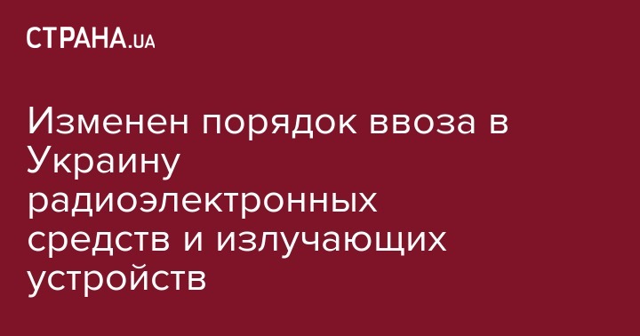 Соответствующий Порядок ввоза из-за рубежа и реализации в Украине радиоэлектронных средств и излучающих устройств утвержден решением НКРСИ от 13 февраля 2018 года № 78.