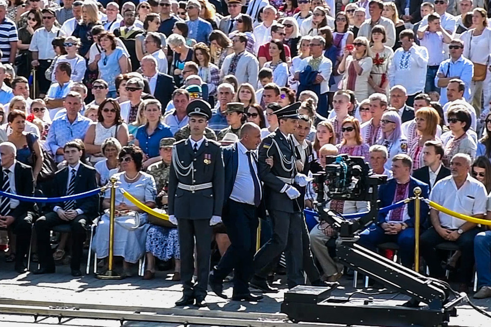 Появилось фото того, как 24 августа во время речи президента Петра Порошенко перед военным парадом ко Дню независимости один из солдат почетного караула внезапно потерял сознание. Инцидент случился на 9 минуте речи Порошенко, пишет Информатор.