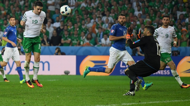 На 85-й минуте матча юркий 176-сантиметровый ирландский полузащитник Робби Брэди сумел оставить не у дел всех великанов защиты Италии и точным ударом головой после передачи Хулагана вывел свою команду в следующий этап Евро-2016.