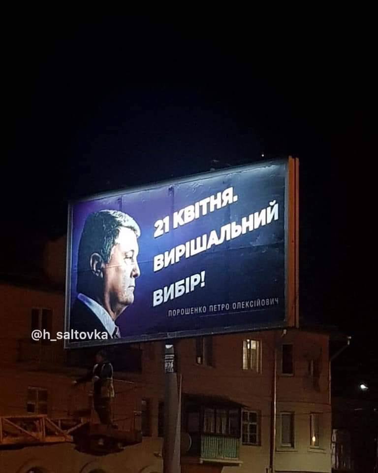 Об этом сообщил в Facebook журналист Иван Яковина, который опубликовал фото нового вида рекламного борда Порошенко.