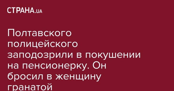 "По предварительной информации 28 апреля 2019 года полицейский, находясь в поселке Опошня Зеньковского района, бросил в сторону 64-летней женщины гранату. В результате взрыва женщина получила повреждения в виде проникающего осколочного ранения брюшной стенки и бедер", - сообщили в ведомстве. Сотрудники ГБР изъяли 30 патронов калибра 5,45 во время обысков по месту жительства полицейского.
