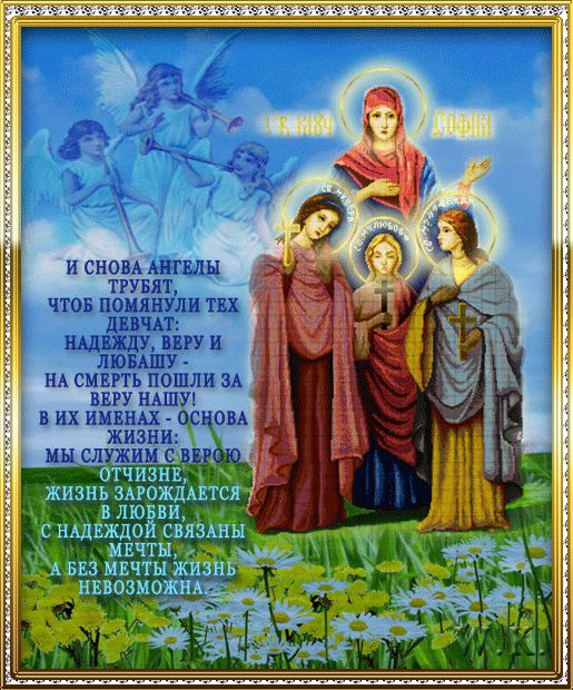 Сегодня поздравляют всех девушек и женщин с именем Вера, Надежда, Любовь и София. В честь праздника именинницам дарят иконки, ладанки, угощают детей фруктами и сладостями.