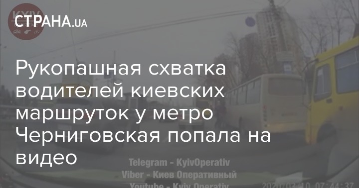 Двое водителей киевских маршруток сошлись в рукопашной схватке прямо на остановке возле своих транспортных средств. Драка произошла утром 10 марта возле станции метро "Черниговская".