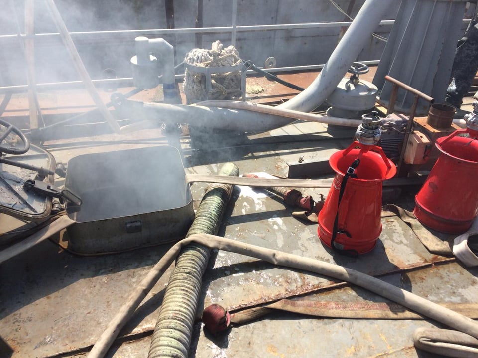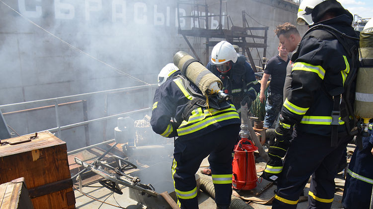 Так, в 15:10 пожар в трюме корабля локализован на площади 8 кв. м, а в 15:38 возгорание было ликвидировано.