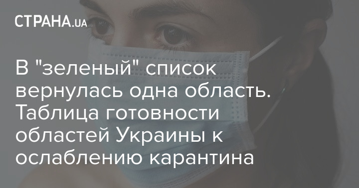 В "зеленый" список вернулась одна область. Таблица готовности областей Украины к ослаблению карантина