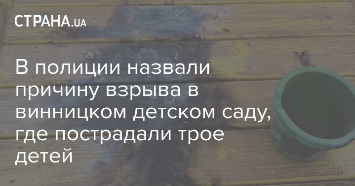 По словам начальника Винницкого районного управления полиции Виталия Курчика, следственно-оперативная группа установила, что во время прогулки дети нашли на территории детского сада неизвестный предмет. Во время игры с ним он взорвался.