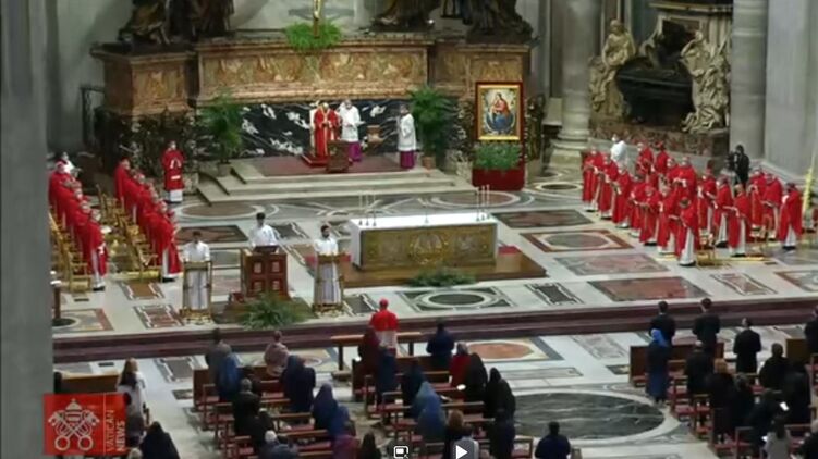 Но в этот раз здание собора практически пустовало – присутствовали чуть больше сотни человек. Причиной этого являются жесткие противоэпидемические правила. Из-за них практически все, за исключением понтифика и хора, были в масках.