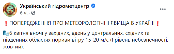 Вместе с похолоданием, которое обещают синоптики, в большинстве регионов Украины 6 апреля, ожидаются порывы ветра, из-за которых объявляют штормовое предупреждение.