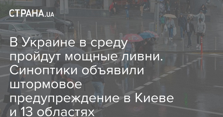 В Украине в среду пройдут мощные ливни. Синоптики объявили штормовое предупреждение в Киеве и 13 областях