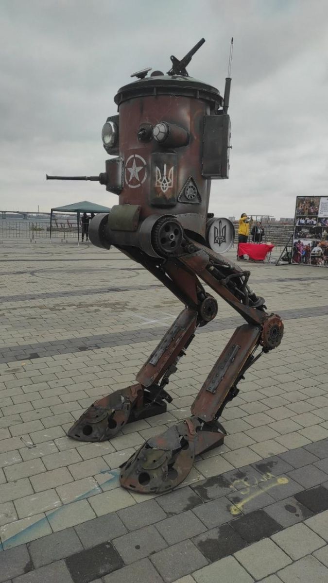 Кузнец из Бердянска Запорожской области Александр Шапошник представил две новые работы. Это металлические скульптуры говорящего шагающего танка на двух ногах и Грут - внеземной монстр из популярных комиксов Marvel.