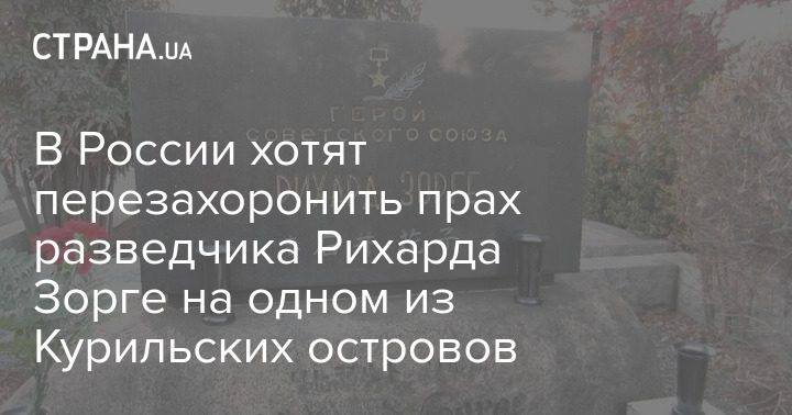 Председатель научного совета Российского военно-исторического общества Анатолий Кошкин предложил перезахоронить прах легендарного советского разведчика Рихарда Зорге на одном из Курильских островов. Кошкин считает, что это можно было бы сделать на острове Матуа и переименовать последний в честь героя.