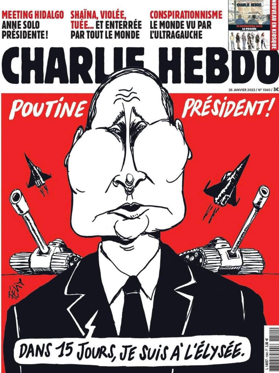 Французская газета с карикатурами Charlie Hebdo шутя прочит, что Путин "через две недели будет хозяином резиденции президента Франции".