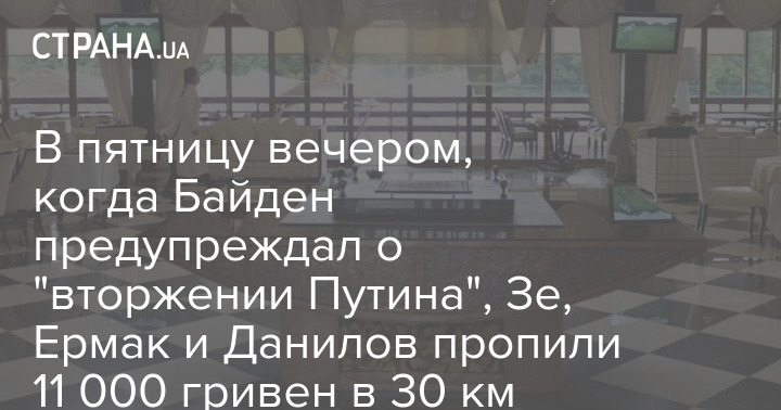 В пятницу вечером, когда Байден предупреждал о "вторжении Путина", Зе, Ермак и Данилов пропили 11 000 гривен в 30 км от границы с РФ. Фото чека
