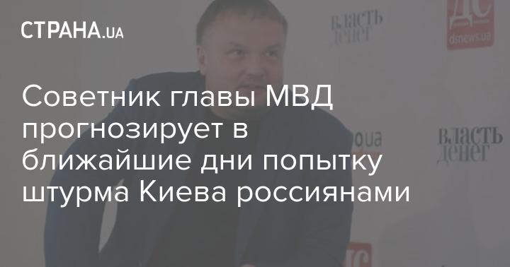 Советник главы МВД Украины Вадим Денисенко заявляет, что в ближайшие дни начнётся битва за Киев - россияне попытаются штурмовать столицу и уже сосредоточили на подступах к ней крупную группировку.