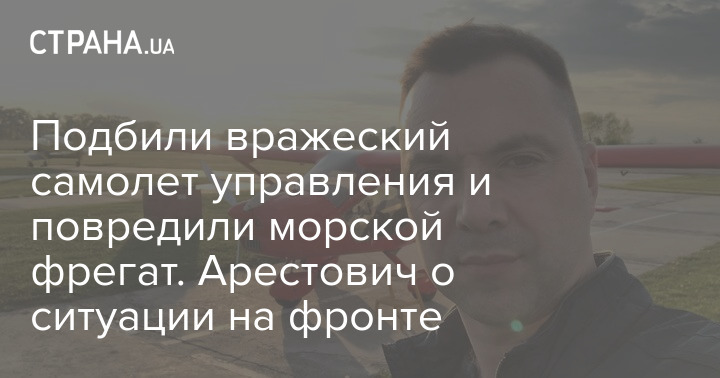 Арестович добавил, что наша ПВО или ВВС повредила воздушный пункт управления - самолет Ил-22, совершивший аварийную посадку в России. Также поврежден фрегат российского флота типа "Адмирал Эссен".