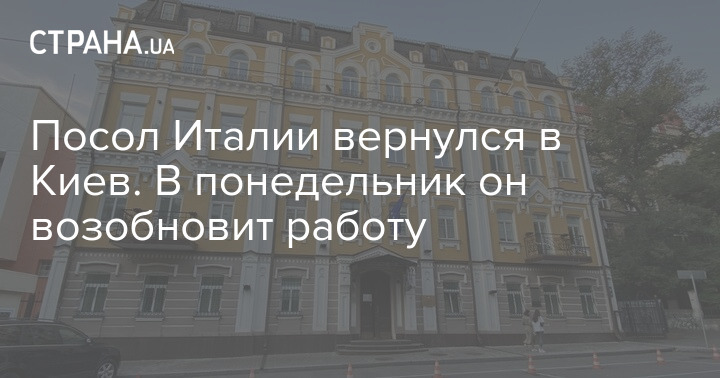 Посол Италии вернулся в Киев. В понедельник он возобновит работу