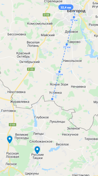 От границы до Белгорода действительно порядка 30 километров. О украинских позиций до кордона - еще километров 10-15 (при этом, есть данные, что на некоторых участках украинские войска уже на границу вышли). Максимальная дальность "Града" - 42 километра. То есть в теории Белгород могут обстреливать уже сейчас.