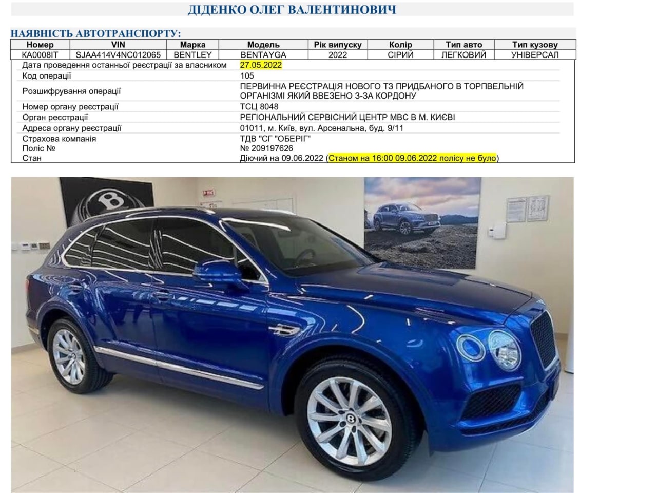 "Подтверждаю информацию Алексей Кучеренко о покупке топ менеджером государственного "Нефтегаза" Олегом Диденко автомобиля Bentley Bentayga V8. Сообщу некоторые подробности. Нулевой растаможкой не воспользовались.