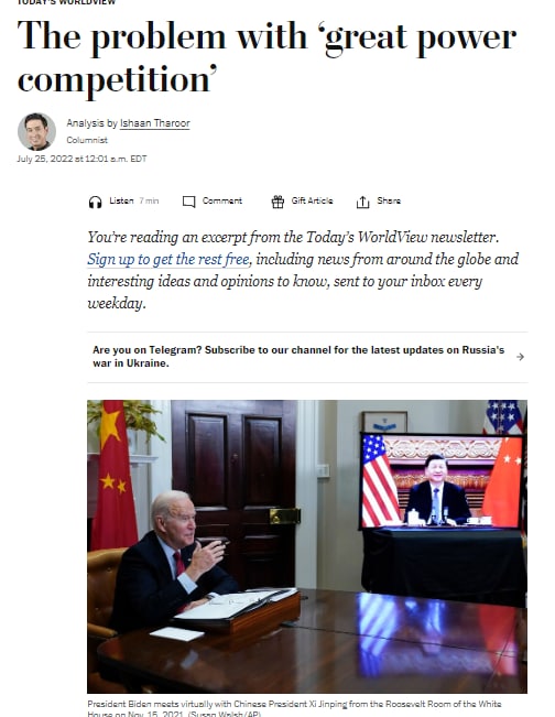 По его мнению, ни Вашингтон, ни Пекин не смогут добиться решающей победы друг над другом им придется "вечно жить вместе".