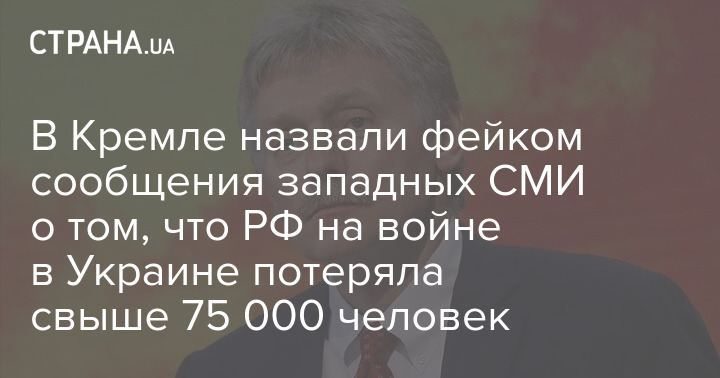 В Кремле считают фейком сообщения западных СМИ о том, что РФ на войне в Украине потеряла убитыми или ранеными более 75 000 человек. Об этом пишут российские СМИ.