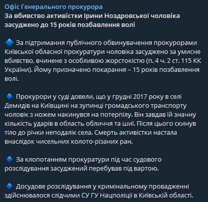 Обвиняемого в убийстве активистки Ирины Ноздровской приговорили к 15 годам тюрьмы. Фото: Facebook