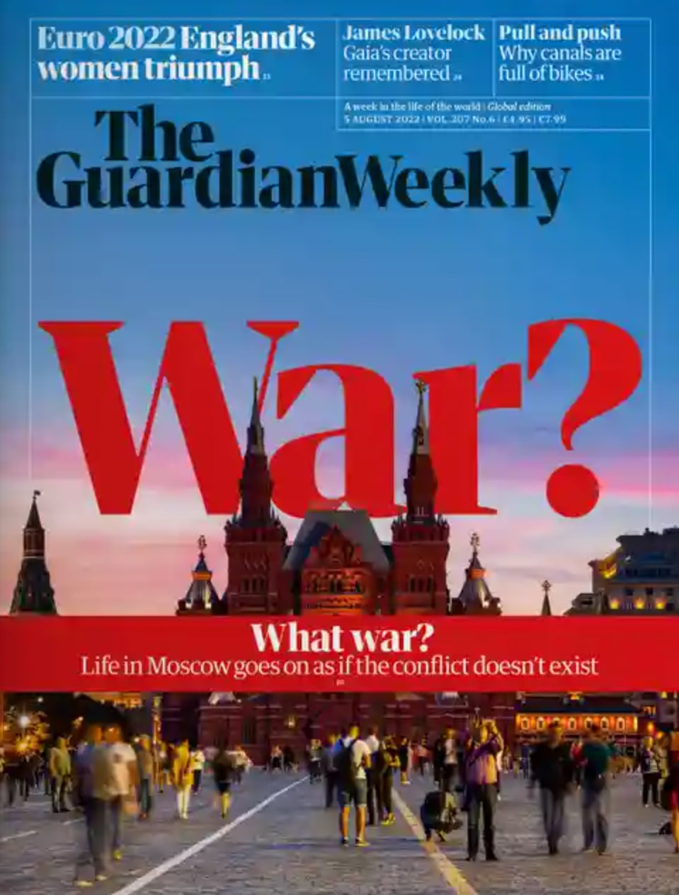 Главный материал еженедельника Guardian Weekly посвящен Москве и носит заголовок: "Война? Какая война?"