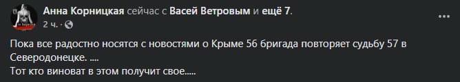 "Пока все радостно носятся с новостями о Крыме, 56 бригада повторяет судьбу 57 в Северодонецке", - пишет Корницкая в Facebook.