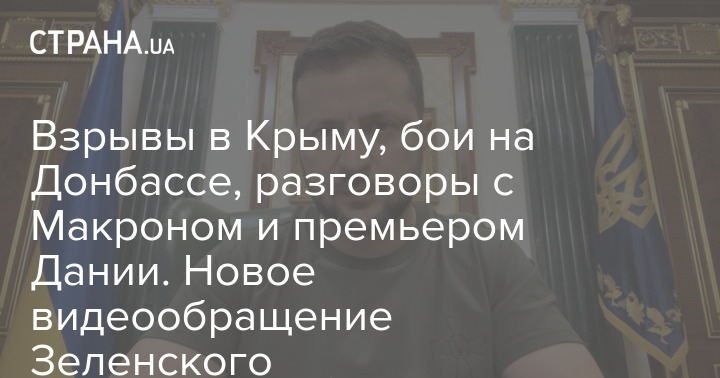 Взрывы в Крыму, бои на Донбассе, разговоры с Макроном и премьером Дании. Новое видеообращение Зеленского