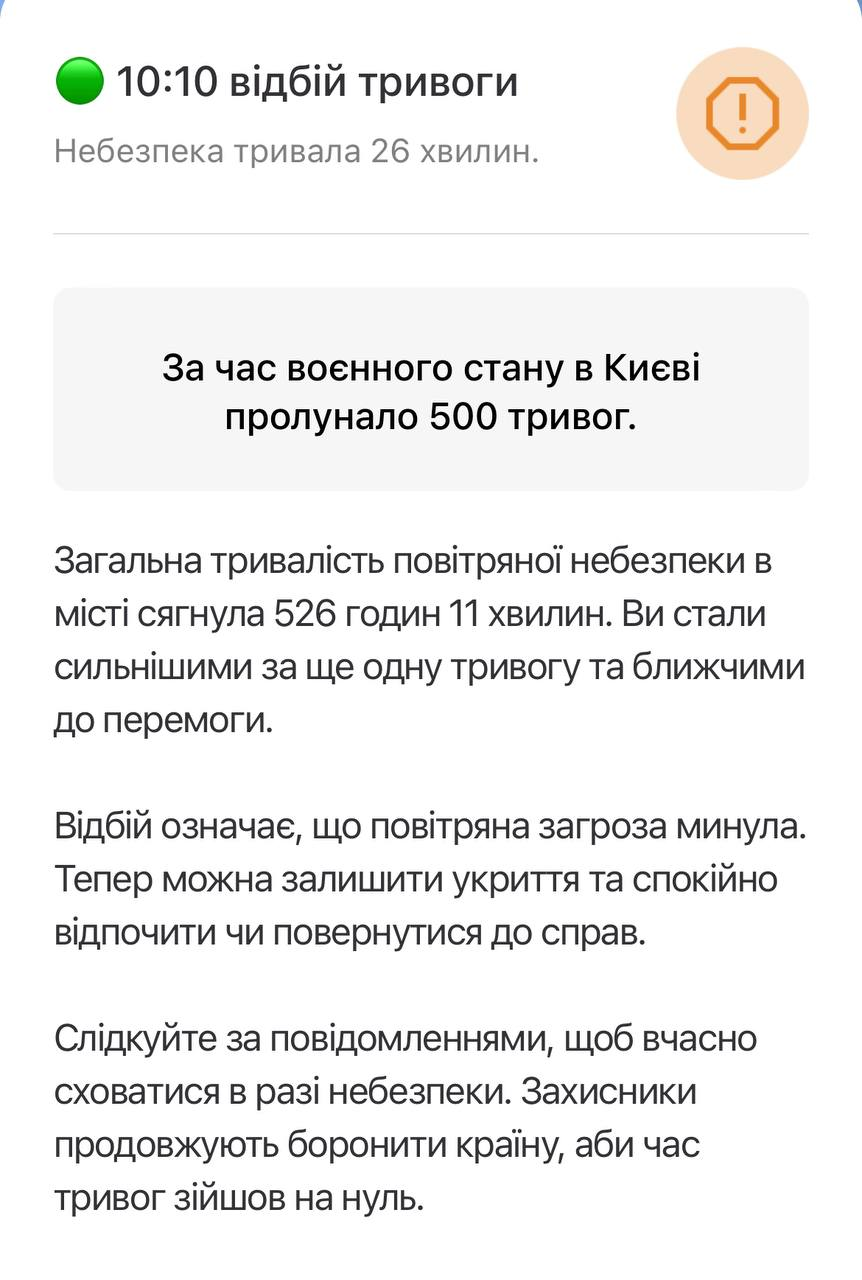 Первая сирена, прозвучавшая сегодня в Киеве, стала "юбилейной" - 500-й с начала войны.