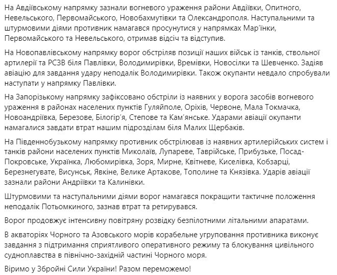 Сводка Генштаба ЗСУ за 29 августа. Фото: facebook.com/GeneralStaff.ua