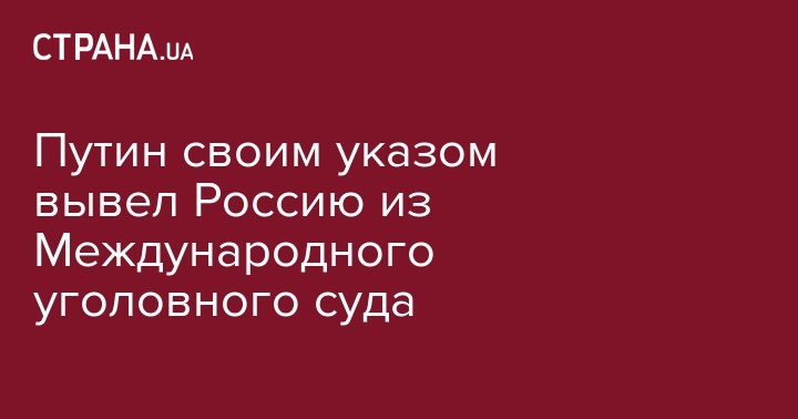 Российская Федерация перестала быть участником Римского статута Международного уголовного суда (МУС). Соответствующее распоряжение подписал сегодня президент РФ Владимир Путин, сообщает "Интерфакс".