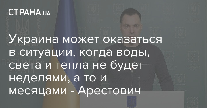 Советник Офиса президента Алексей Арестович заявил, что Украина может оказаться в ситуации, когда воды, света и тепла не будет неделями, а то и месяцами.