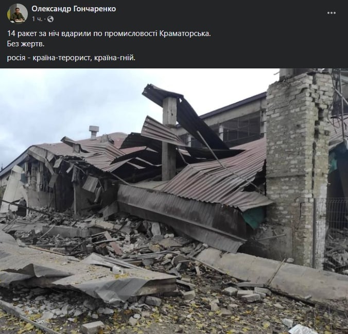 11:11 По промышленным объектам Краматорска ударили 14 ракет, сообщил мэр города Александр Гончаренко.