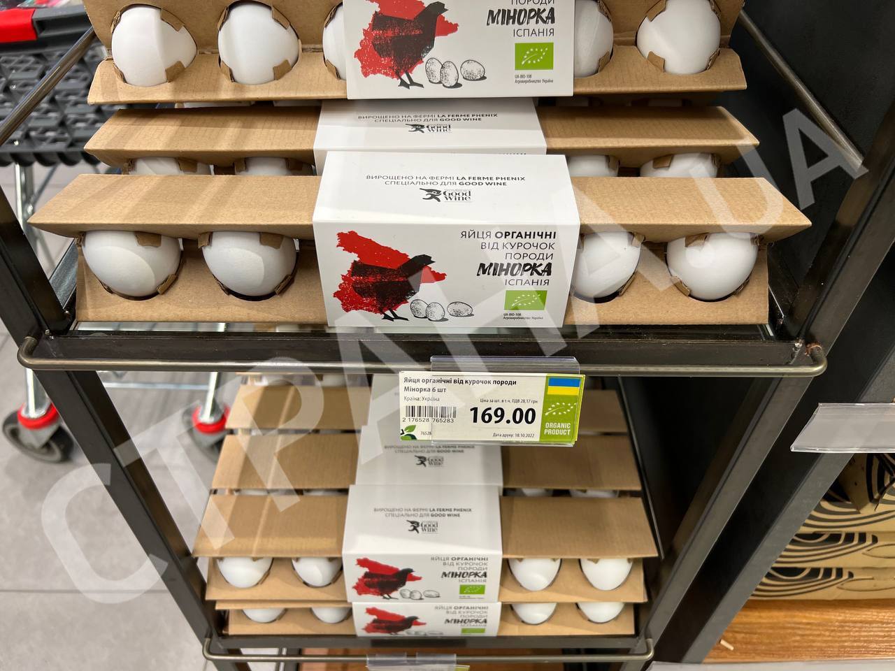 В сети киевских супермаркетов GoodWine покупатели заметили испанские органические яйца по 169 гривен за шесть штук. То есть цена десятка выходит 281 гривна 60 копеек.
