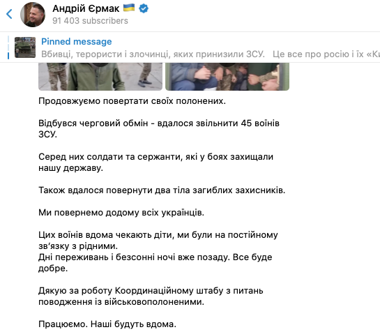 Украина и Россия провели очередной обмен пленными, в рамках которого Украина вернула домой 45 своих военнослужащих.