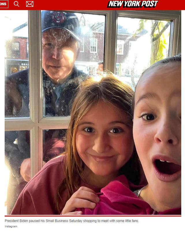 Байден во время визита на Нантакет заглянул в окно к маленьким девочкам. Они сделали с ним селфи. Фото, видео