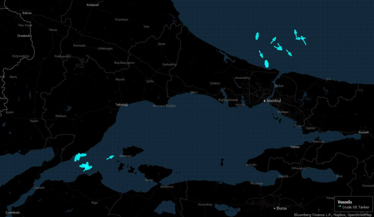 В пробке из танкеров у берегов Турции около проливов Босфор и Дарданеллы застряли 20 перевозчиков с 18 миллионами баррелей нефти, преимущественно из Казахстана.