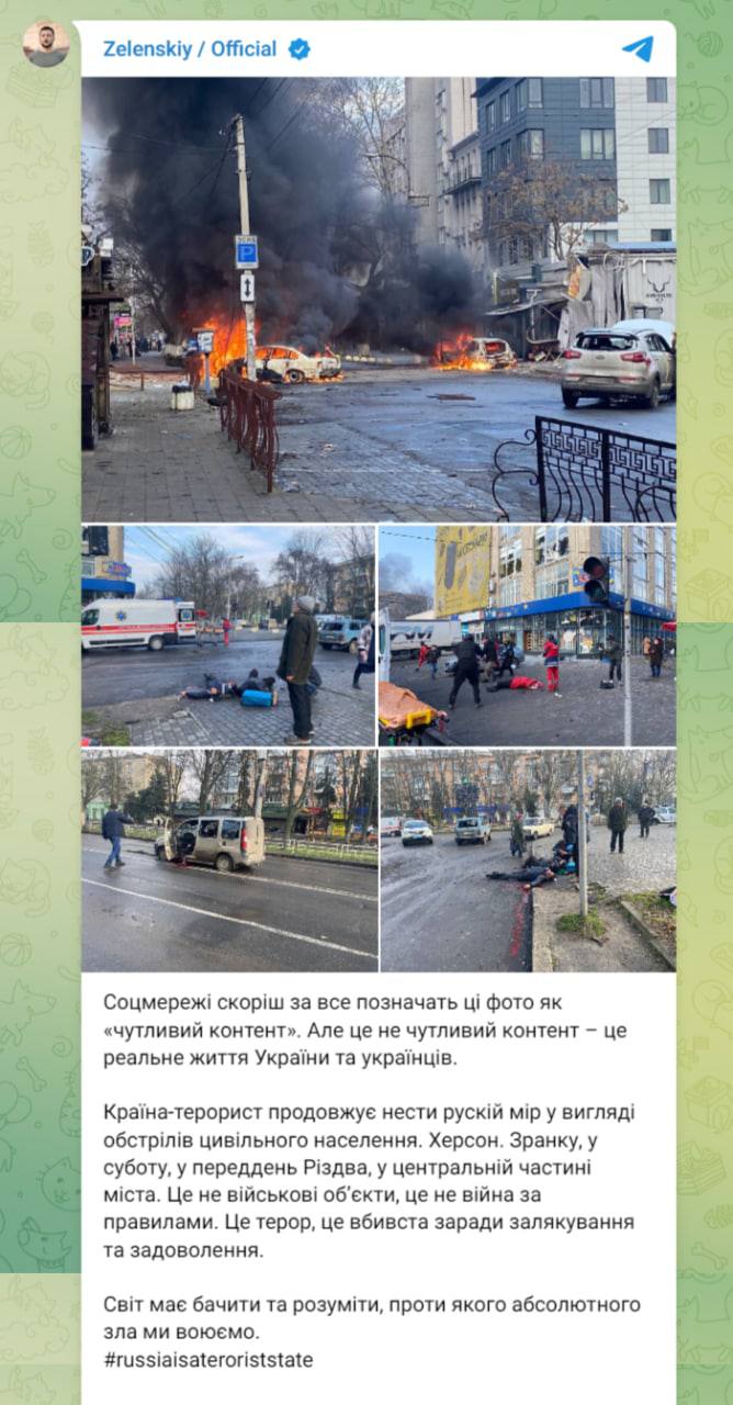 "Соцсети, скорее всего, обозначат эти фото как "чувствительный контент". Но это не чувствительный контент – это реальная жизнь Украины и украинцев", - пишет президент.