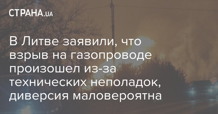 Взрыв на магистральном газопроводе в Пасвальском районе Литвы вчера произошёл из-за технических неполадок, диверсия маловероятна.