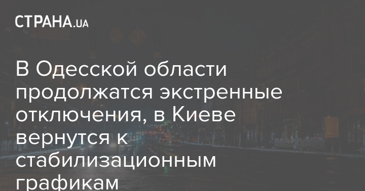 В Одесской области продолжатся экстренные отключения, в Киеве вернутся к стабилизационным графикам